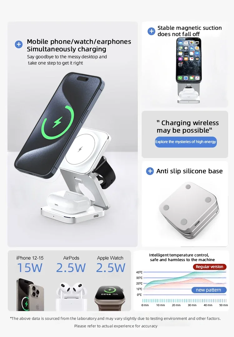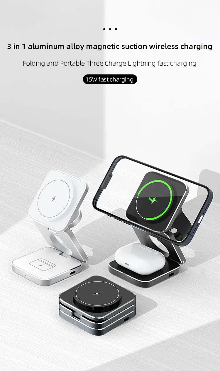 New Qi2 Certified 3-in-1 Magnetic Wireless Charger with Folding Stand